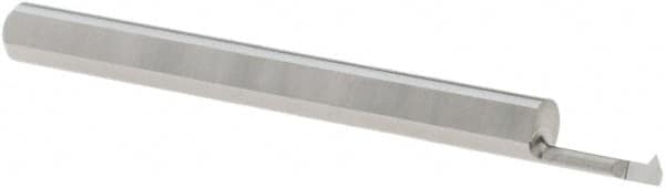 Single Point Theading Tool: 0.06″ Min Thread Dia, 40 to 80 TPI, 0.2″ Cut Depth, Internal, Solid Carbide 1/8″ Shank, 1-1/2″ OAL, 60 ° Profile, 0.02″ Projection from Edge, Bright/Uncoated