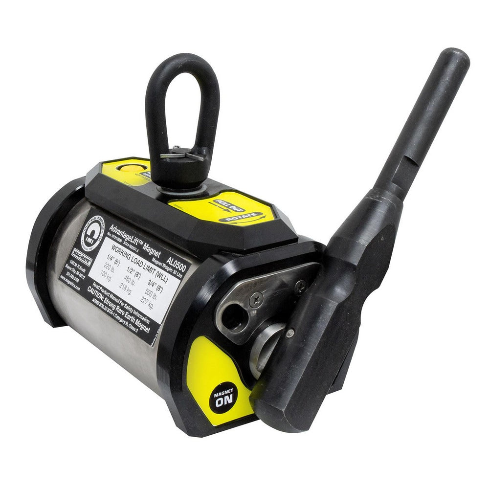 | Features | Supports Custom Pole Shoes (1/4"-20 Tapped Holes, 1/2" Deep); "On/Off" Permanent Rare Earth Magnet; Handle Moves Laterally Instead of Pulling, Pressing Buttons or Levers; Locking Lifting Bail(s) Prevents Accidental Load Release During Lift; Recessed (Protected) Labels for Extended Life; Embedded RFID Chip; Swiveling Lift Bail(s); Operating; Lifts Flats Both Horizontally & Vertically with Vertical Lift Bail; 3:1 Design Factor |