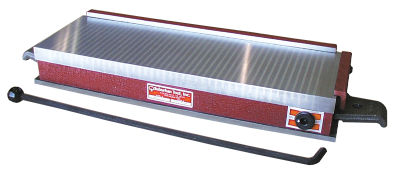 *Rectangular Magnetic Chuck *Ceramic magnets provide superior holding power that never fades *Sealed against dirt and liquids, and can also be used in EDM machines *Front mounted handle is removable to eliminate interference *Handle, back rail, side rail and two clamps included *Overall height is 2-5/8"