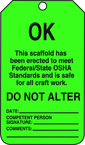 Scaffold Tag, OK This Scaffold Has Been Erected To Meet Federal, 25/Pk, Plastic