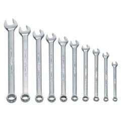 •Brand Name: Williams •Case: Roll Pouch •Finish: Satin Chrome •Made In: USA •Number of Pieces: 10 •Point Size: 12 •Set Includes: 7, 8, 9, 10, 11, 12, 13, 15, 17mm Heat Treated, Chrome Satin Finish •Special Feature: Combination Wrench - Metric •Type: Metric Combination Wrench Set
