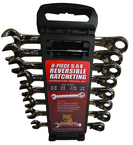 8 Piece - 5/16 to 3/4" - 15° Offset - Reversible Ratcheting Combination Wrench Set