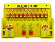 •Virtually indestructible, these wall mounted stations keep padlocks, tags, and hasps within easy reach. Xenoy, aluminum, or steel padlocks in 4, 10 or 20 lock formats. Unfilled stations also available. 4-Lock Station (12-1/4 x 16 x 1-3/4) contains (4) padlocks, (2) 420 hasps, (1) 497A tags (12/pack). 10-Lock Station (15-1/2 x 22 x 1-3/4) contains (10) padlocks, (2) 420 hasps, (2) 497A tags (12/pack). 20-Lock Station (22 x 22 x 1-3/4) contains (20) padlocks, (4) 420 hasps, (4) 497A tags (12/pack).