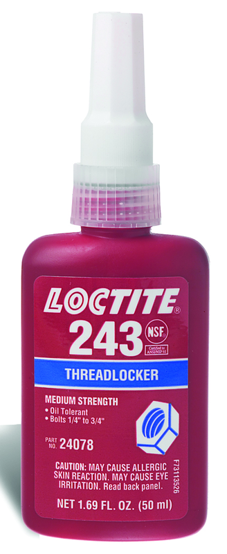 •Brand Name: Loctite •Color: Blue •Container: Bottle •Hazard Code: HAZ57 •Model No.: 243 •Size: 50ml •Strength: Medium-Primerless •Style: Threadlocker
