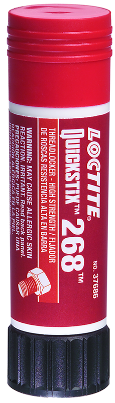 •Brand Name: Loctite •Color: Red •Container: Tube •Description: A permanent threadlocker for fasteners up to 3/4" in diameters. QuickStix 268™ High Strength, Threadlocker Stick •Hazard Code: HAZ57 •Model No.: 268 •Product: 268 High Strength •Size: 19gm •Strength: High Strength •Style: Threadlocker