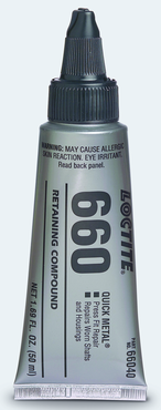•Application: For repair of worn machinery parts •Brand Name: Loctite •Color: Silver •Container: Tube •Description: A creamy, non-running adhesive/sealant. Repairs worn machine parts. •Hazard Code: HAZ57 •Model No.: 660 •Size: 50ml •Strength: High •Style: Retaining Compound