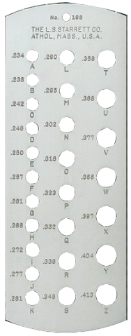 •Brand Name: Starrett •Model Number: 198 •Number of Holes: 2-5/16 x 6-1/4 •Size: A to Z •Type: Drill Gage