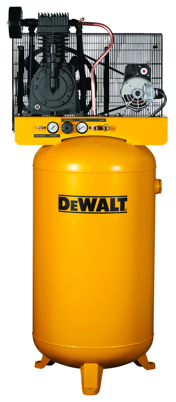 •AFCM: 17.9 SCFM 100 PSI 17.0 SCFM @ 175 PSI •Brand Name: DeWALT •Dimensions: 31.5 x 34.75 x 80 •Max PSI: 175 •Model No.: DXCMV5048055 •Motor: 5HP, 230V, 1PH •Start-Up Oil Kit: Maintenance Kit Available •Starter Included: No Mag Starter •Style: Vertical •Tank: 80 •Weight: 470 lbs