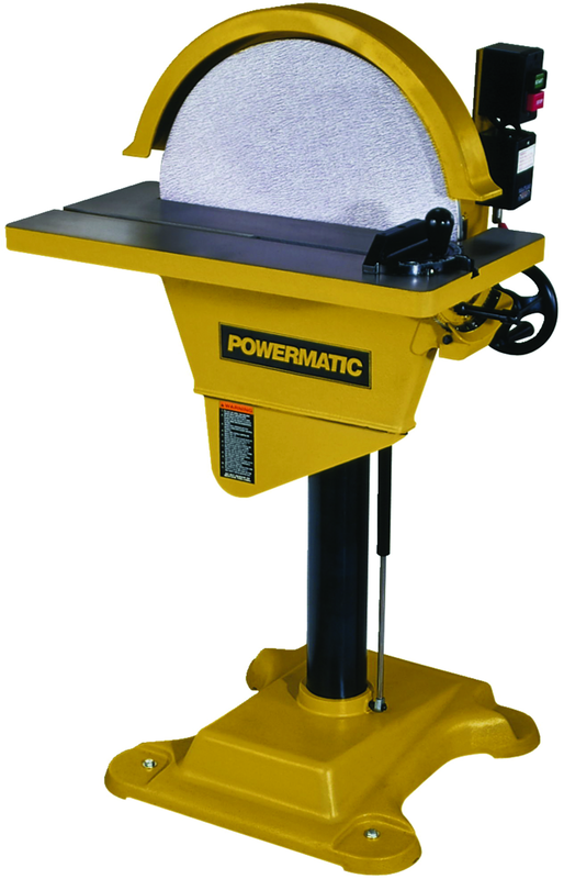 •Brand Name: Powermatic •Disc Size: 20 •Disc Speed: 1720 RPM •Model Number: DS-20 •Motor: 2 HP, 230V, 1PH •Table Size: 10-1/2 x 27-1/2 •Table Tilt: 30° up, 45° down