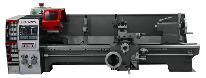•Brand Name: Jet •Cross slide travel: 4-1/4 •Distance Between Centers: 27-1/2 •Model Number: BDB-929 •Motor: 3/4HP, 115V, 1PH •Mount: 1-1/2 x 8 TPI •Spindle Hole Diameter: 3/4 •Spindle Speed (RPM): 130-2000 •Spindle Taper: 3MT •Swing: 8-3/4 •Type: Belt Drive Bench Lathe •Weight: 287 lbs