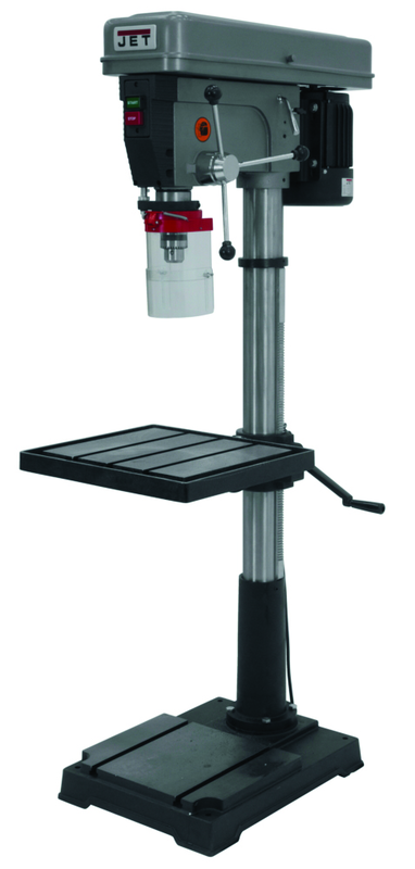 •Brand Name: Jet •Column Diameter: 3-5/8 •Drilling Capacity: 3/4 Cast Iron 5/8 Steel •Model Number: 354402 •Motor: 1 HP, Prewired 115V, 1PH •Quill Diameter: 4-3/4 •Range of Speeds: (12) 150 - 4200 RPM •Spindle Taper: 3MT •Spindle Travel: 4-3/4 •Swing: 20 •Table Size: 18-1/2 x 16-1/2 •Table Travel ("X"): 21-1/2 •Type: Floor Model Drill Press •Weight: 304 lbs