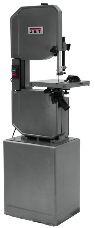 •Blade Length: 7' 8-1/2" •Blade Size: 3/8 x .025 x 92-1/2 •Blade Speeds: (8) 39, 57, 78, 107, 142, 196, 278, 3300 •Blade Widths: 1/8 - 3/4 •Brand Name: Jet •Capacity (in.): 6 x 13-/12 •Cutting Speeds Metal (SFPM): 39, 57, 78, 107, 142, 196, 278 •Cutting Speeds Wood (SFPM): 3300 •Floor Space Required (L x W x H): 26 x 18-1/2 x 67 •Height: 6 •Miter Guage Groove Wide x Deep: 3/4 x 3/8 •Model Number: J-8201K •Motor: 1HP, 115V, 1PH •Table Height at 9 Degrees: 44 From Floor •Table Size: 14 x 14 •Table Tilt: 15° Left, 45° Right •Throat: 13-1/2 •Type: Vertical Metal/Wood Bandsaw •Under Guide: 6 •Under Guide Riser Block: 12 •Weight: 280 lbs
