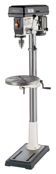 •Brand Name: Shop Fox •Chuck Size: 5/8 •Column Diameter: 3-1/4 •Drilling Capacity: 1 •Model Number: W1680 •Motor: 1HP, 110V •Range of Speeds: (12) 140 - 3050 RPM •Spindle Taper: 3MT •Spindle Travel: 3-1/4 •Swing: 17 •Table Size: 14 RD •Tapping Capacity: JT-3 •Type: Variable Speed Floor Model Drill Press •Weight: 185 lbs