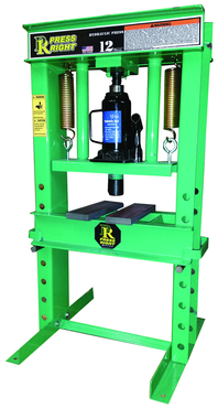 •Base: 24 •Brand Name: Press Right •Capacity (tons): 12 •Height: 37 •Inside Width: 20 •Model Number: 1712BP •Motor: N/A •Ram Travel (in): 5 •Type: Hydraulic Shop Press - Bench •Weight: 95 lbs