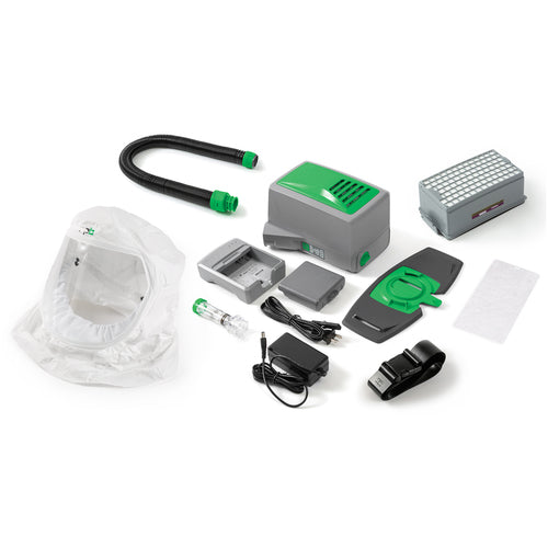 Includes | 17-210-32 T200 Air Duct/Bump Cap Assembly with 17-732 Tychem 2000 Shoulder Length Face Seal Hood, 04-831 Breathing Tube, 03-802 PX5 PAPR Assembly, 03-894 Multi Gas Cartridge - NIOSH |