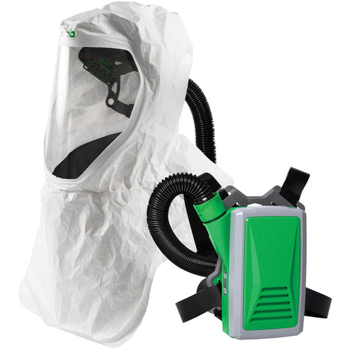 Includes | 17-200-13 T200 Air Duct/Head Harness Assembly with 17-713 Tychem 4000 Sealed Seams Hood, 04-841 Backpack Breathing Tube, 03-603 HX5 PAPR Backpack Assembly - NIOSH |