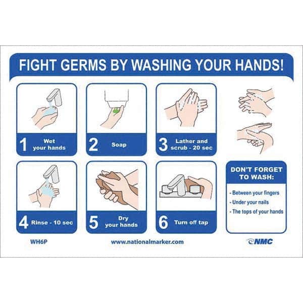 Safety & Facility Labels; Message Type: Restroom, Janitorial & Housekeeping ; Header: None ; Legend: Fight Germs By Washing Your Hands! ; Graphic: Message & Graphic ; Material Type: Pressure Sensitive Vinyl ; Language: English